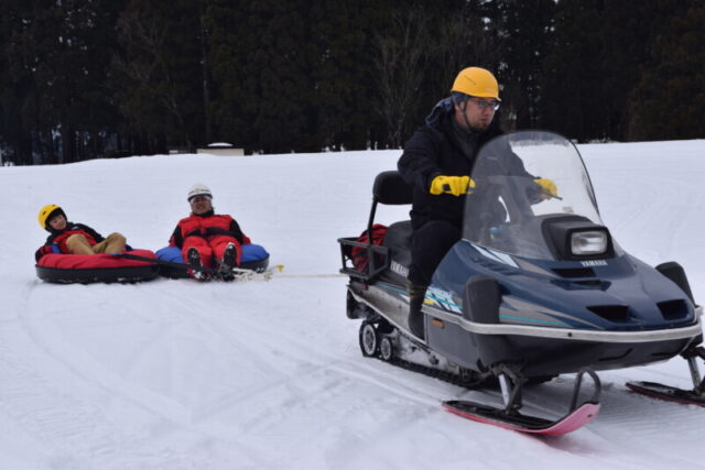 雪の滑り台やスノーモービル体験など、冬ならではの遊びが盛りだくさん!雪に触れて楽しもう!